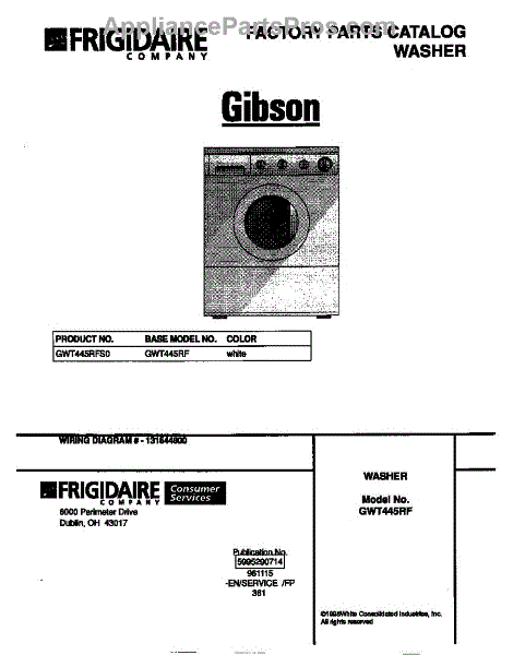 Parts for Frigidaire GWT445RFS0: 01 - Cover Parts