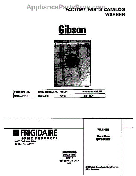 Parts for Frigidaire GWT445RFS1: 01 - Cover Parts