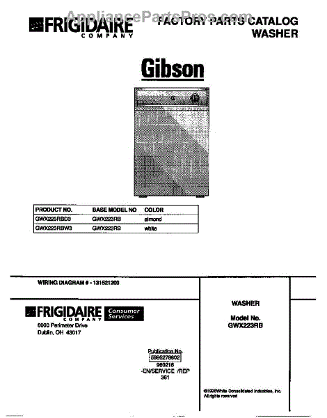 Parts for Frigidaire GWX223RBD3: 01 - Cover Parts