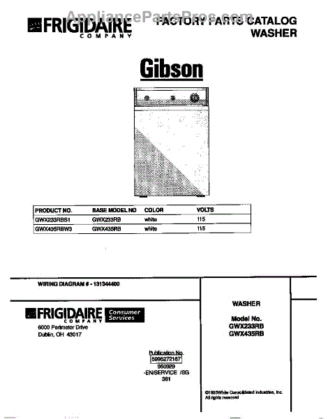 Parts for Frigidaire GWX233RBS1: 01 - Cover Parts