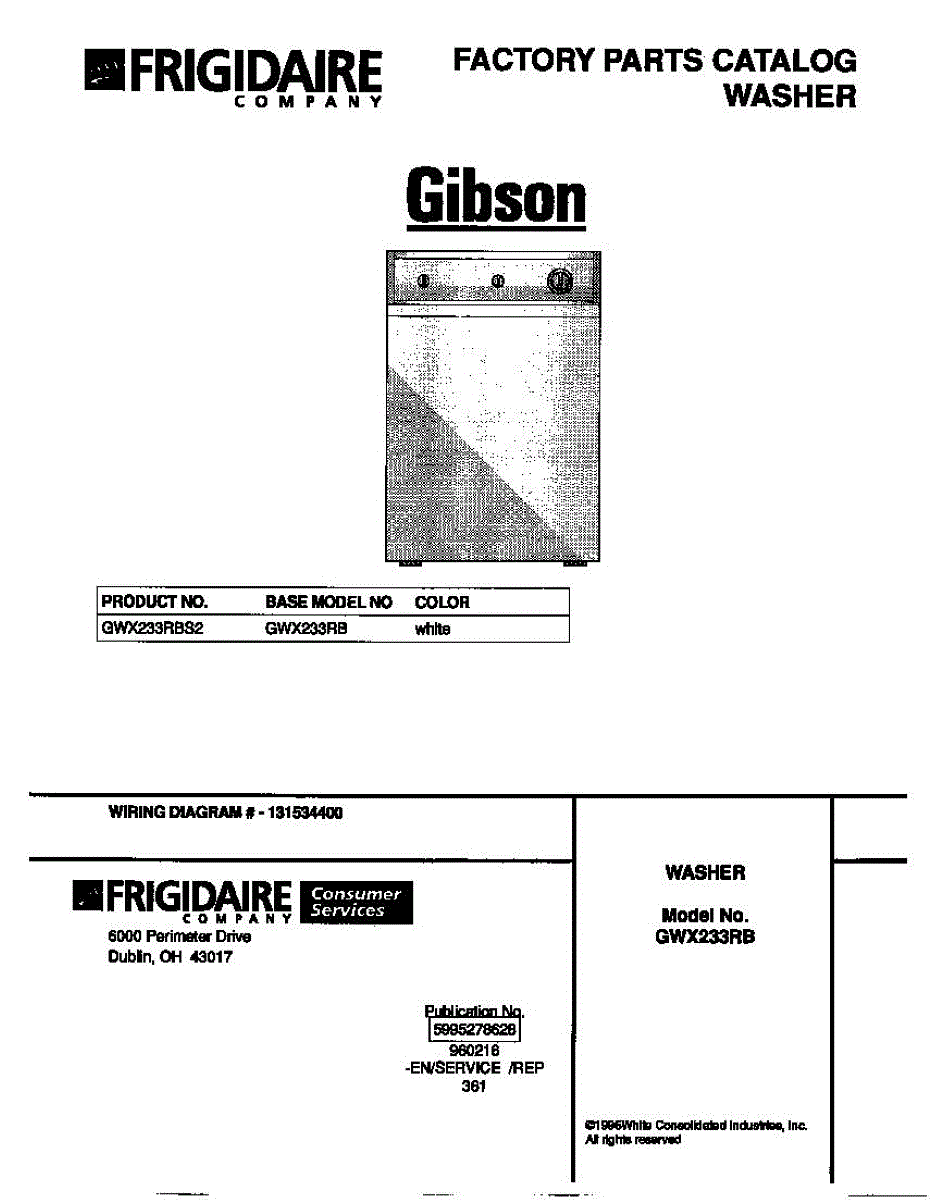 Parts for Frigidaire GWX233RBS2: 01 - Cover Parts
