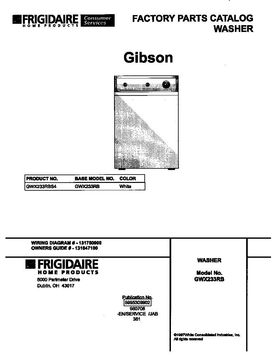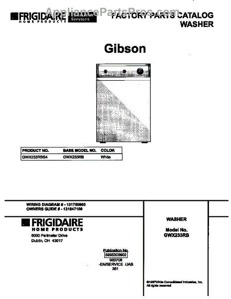 Parts for Frigidaire GWX233RBS4: 01 - Cover Parts