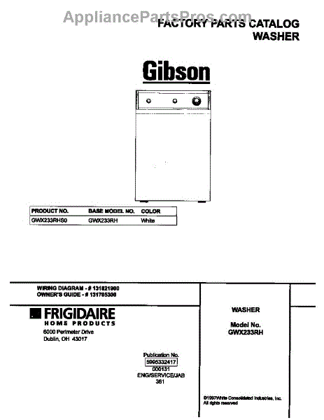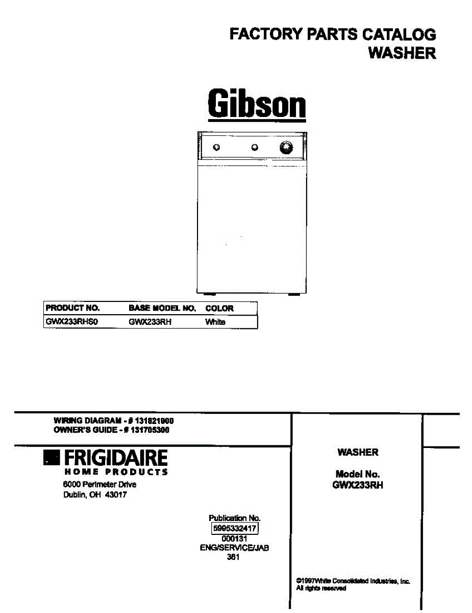 Parts for Frigidaire GWX233RHS0: 01 - Cover Parts