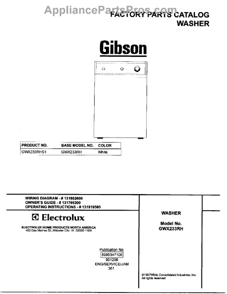 Parts for Frigidaire GWX233RHS1: 01 - Cover Parts