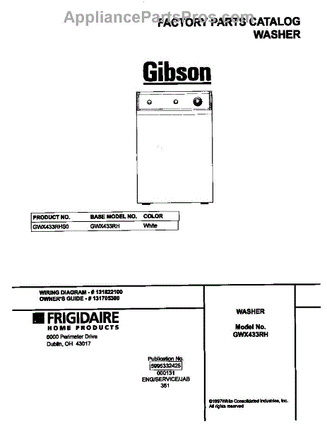 Parts for Frigidaire GWX433RHS0: 01 - Cover Parts