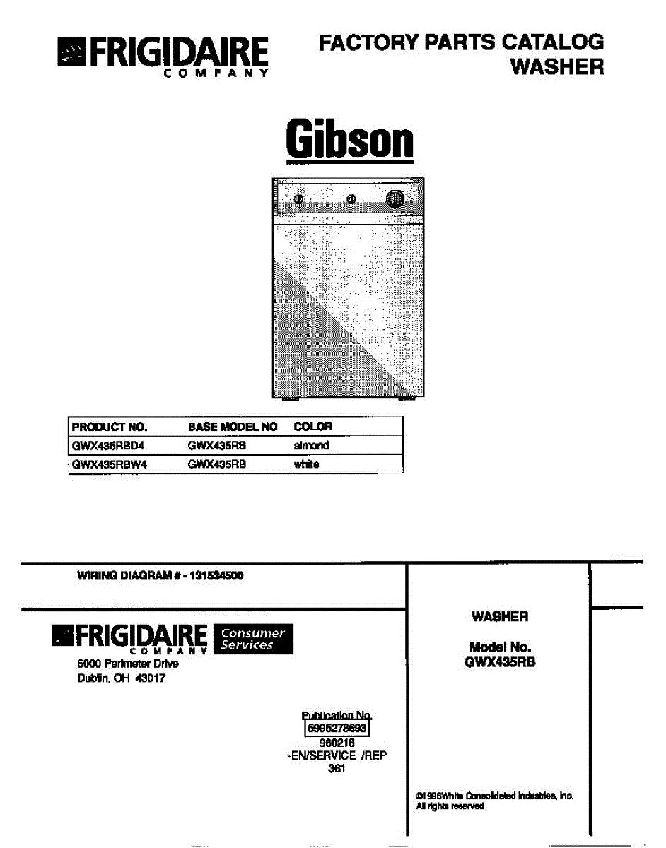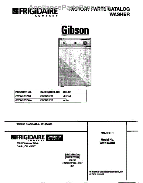 Parts for Frigidaire GWX435RBW4: 01 - Cover Parts