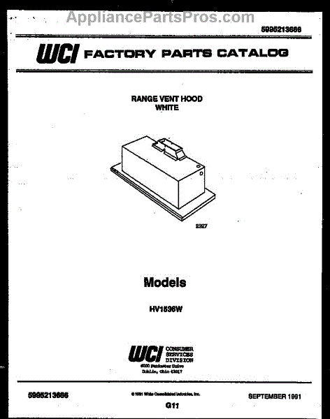 Parts for Frigidaire HV1536W: 01 - Cover Parts