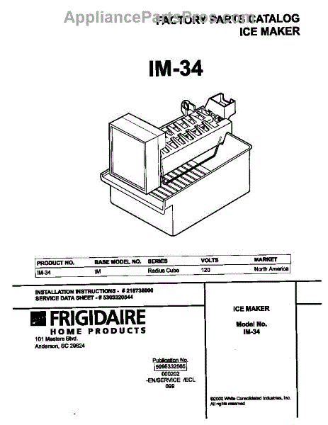 Parts for Frigidaire IM34: 01 - Cover Parts