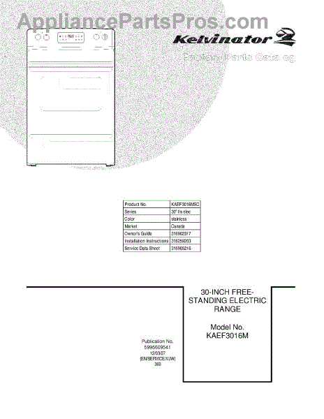Parts for Frigidaire KAEF3016MSC: 01 - Cover Parts