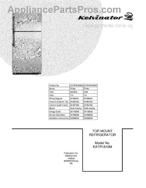 Parts for Frigidaire KATR1816MW4: 01 - Cover Parts