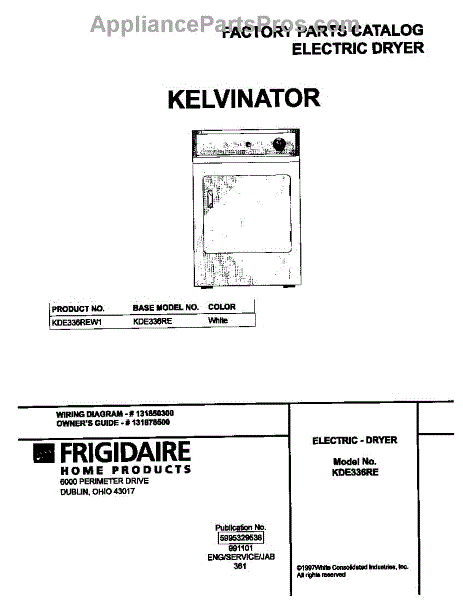 Parts for Frigidaire KDE336REW1: 01 - Cover Parts