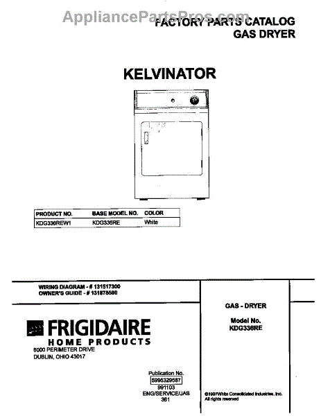 Parts for Frigidaire KDG336REW1: 01 - Cover Parts