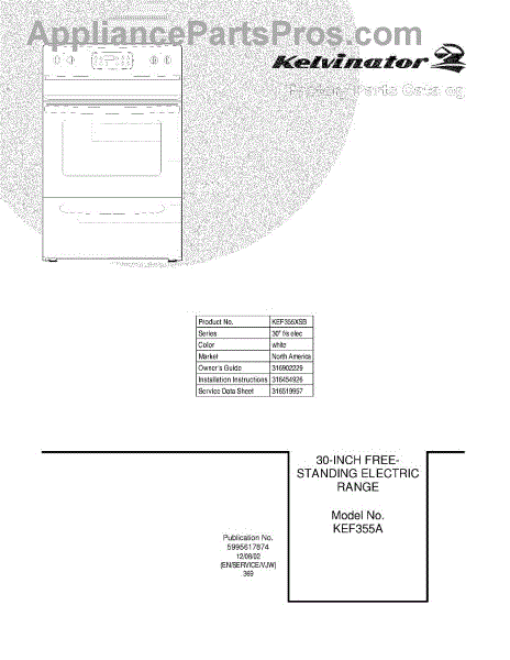 Parts for Frigidaire KEF355XSB: 01 - Cover Parts
