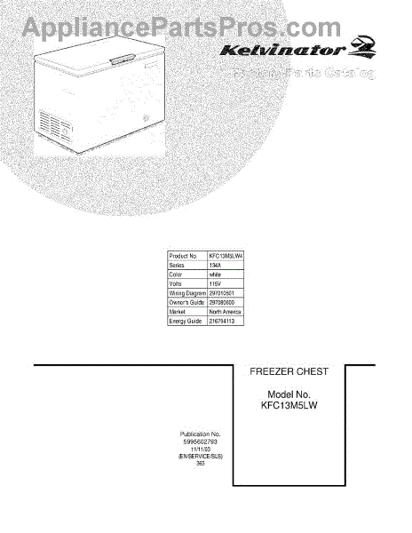 Parts for Frigidaire KFC13M5LW4: 01 - Cover Parts