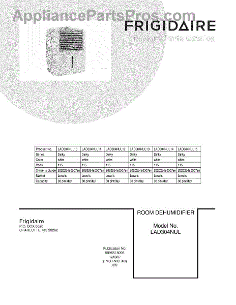 Parts for Frigidaire LAD304NUL12: 01 - Cover Parts