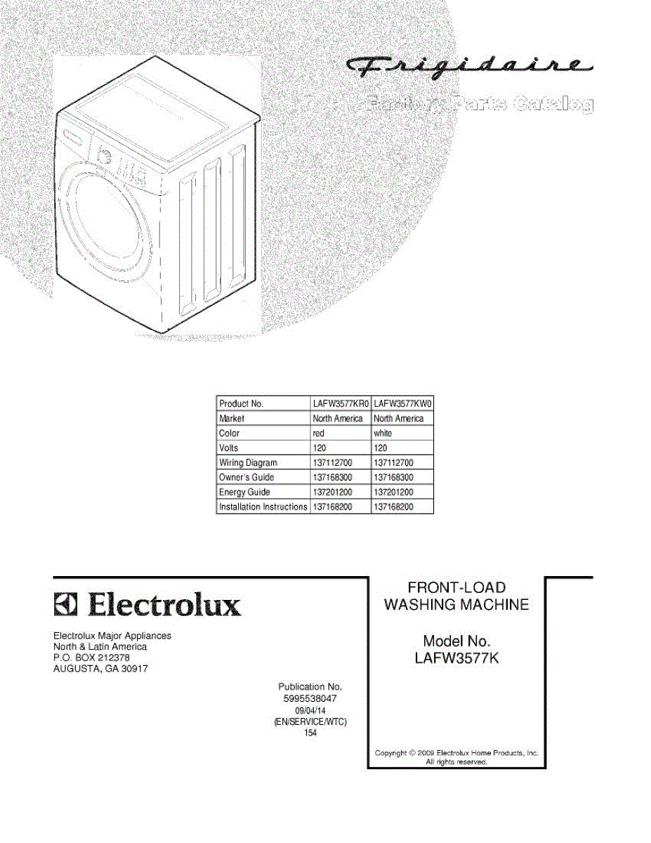 Parts for Frigidaire LAFW3577KW0: 01 - Cover Parts