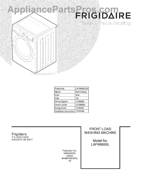 Parts for Frigidaire LAFW8000LW0: 01 - Cover Parts