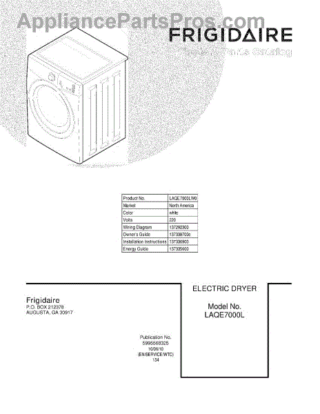 Parts for Frigidaire LAQE7000LW0: 01 - Cover Parts
