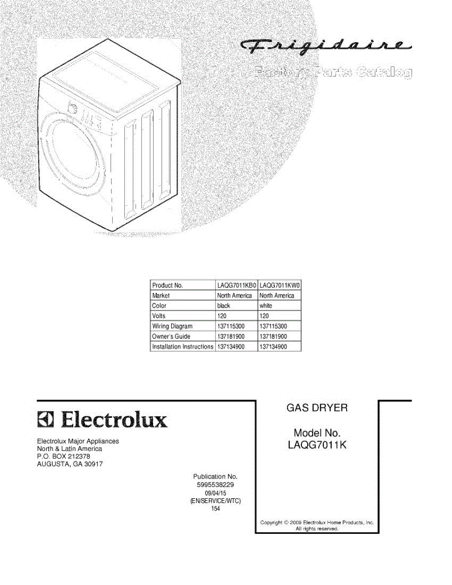 Parts for Frigidaire LAQG7011KB0: 01 - Cover Parts