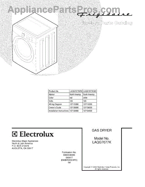 Parts for Frigidaire LAQG7077KR0: 01 - Cover Parts