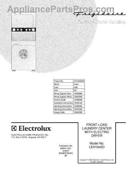 Parts for Frigidaire LEH1642DS0: 01 - Cover Parts