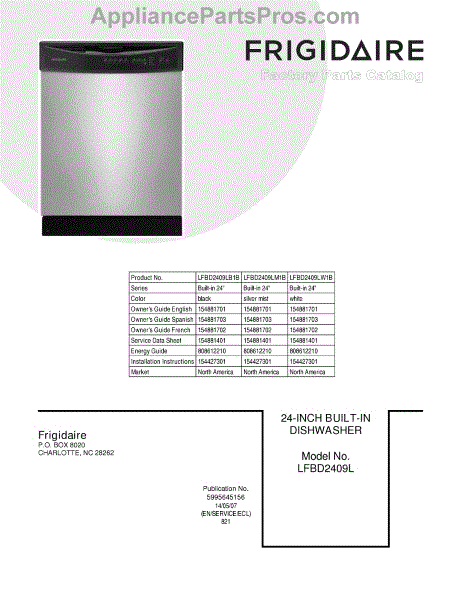 Parts for Frigidaire LFBD2409LM1B: 01 - Cover Parts