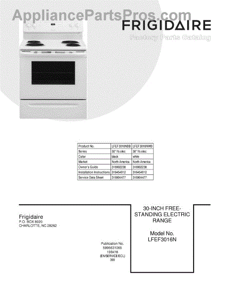 Parts for Frigidaire LFEF3016NBB: 01 - Cover Parts