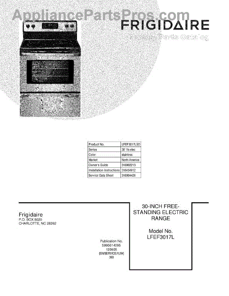 Parts for Frigidaire LFEF3017LSD: 01 - Cover Parts