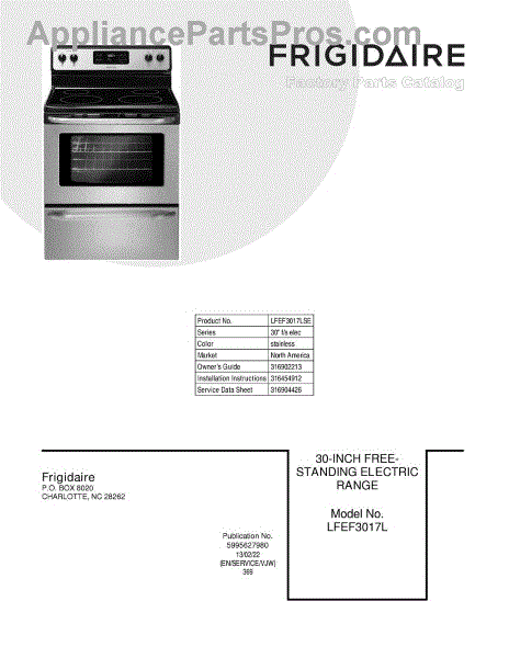 Parts for Frigidaire LFEF3017LSE: 01 - Cover Parts