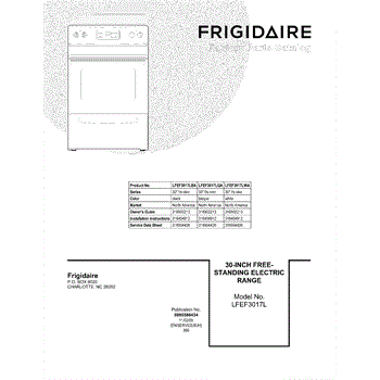Parts for Frigidaire LFEF3017LWA: 01 - Cover Parts