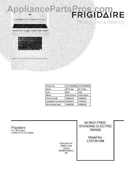 Parts for Frigidaire LFEF3019MBD: 01 - Cover Parts