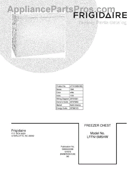 Parts for Frigidaire LFFN15M5HWG: 01 - Cover Parts