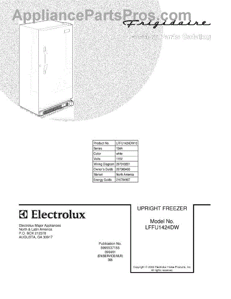 Parts for Frigidaire LFFU1424DW10: 01 - Cover Parts