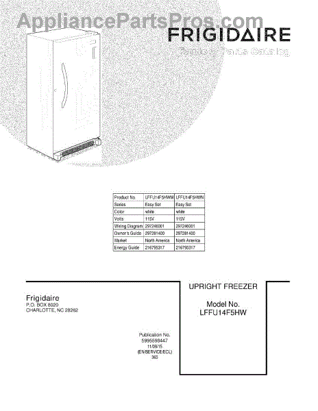 Parts for Frigidaire LFFU14F5HWN: 01 - Cover Parts