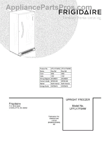 Parts for Frigidaire LFFU17F5HWJ: 01 - Cover Parts