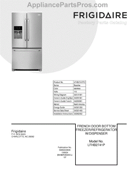 Parts for Frigidaire LFHB2741PF2: 01 - Cover Parts