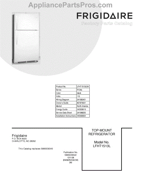 Parts for Frigidaire LFHT1513LBA: 01 - Cover Parts