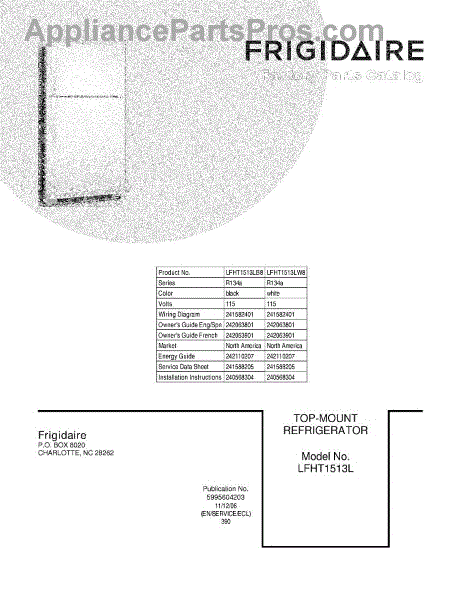 Parts for Frigidaire LFHT1513LW8: 01 - Cover Parts