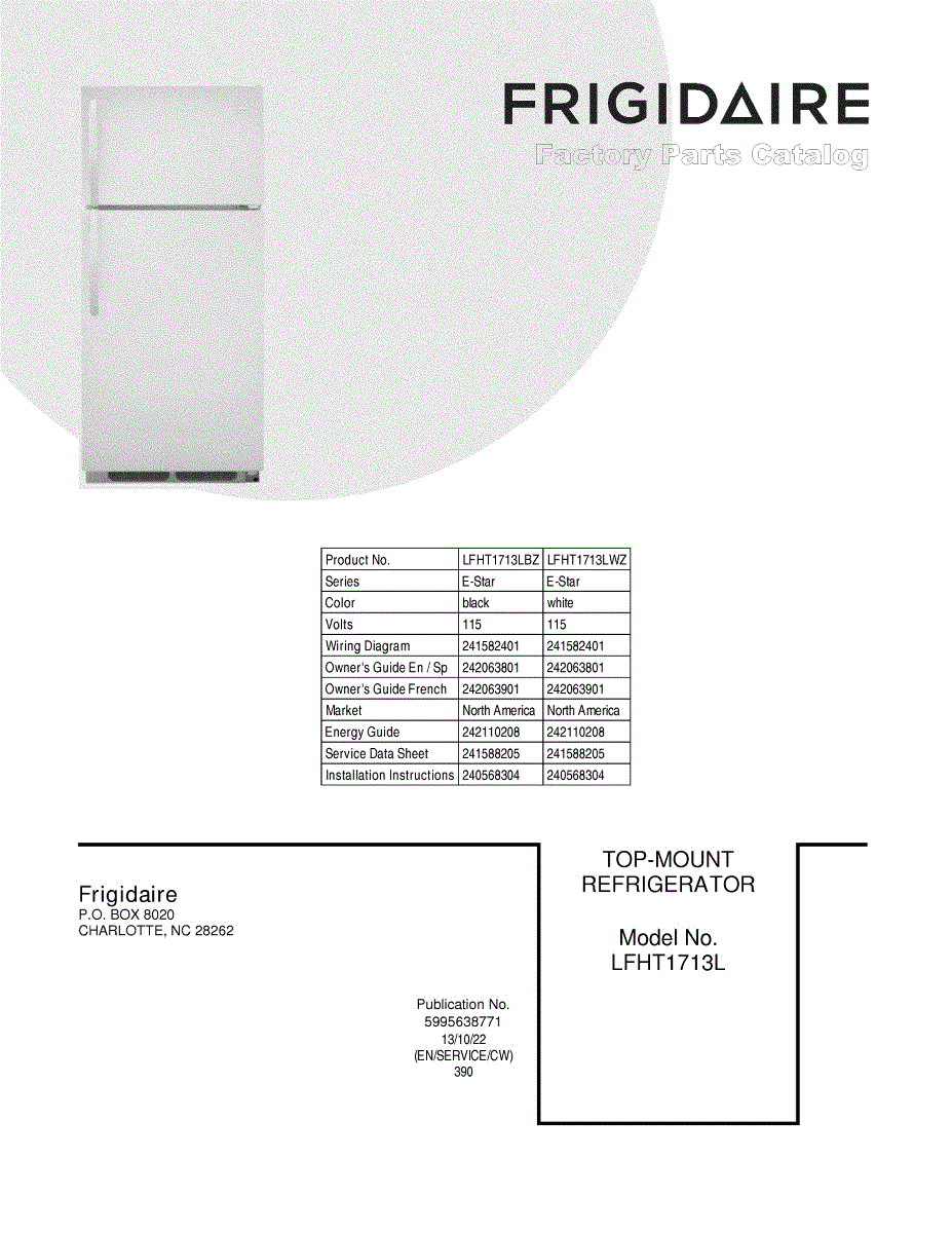Parts for Frigidaire LFHT1713LWZ: 01 - Cover Parts