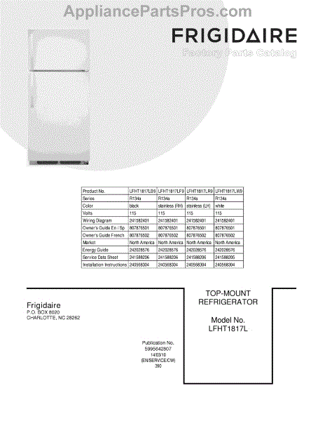 Parts for Frigidaire LFHT1817LB9: 01 - Cover Parts
