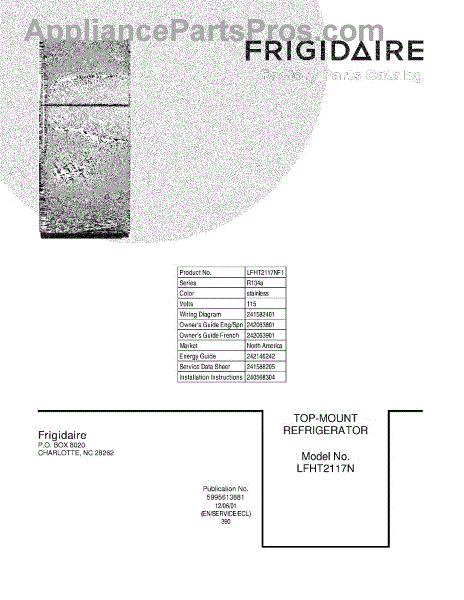 Parts for Frigidaire LFHT2117NF1: 01 - Cover Parts
