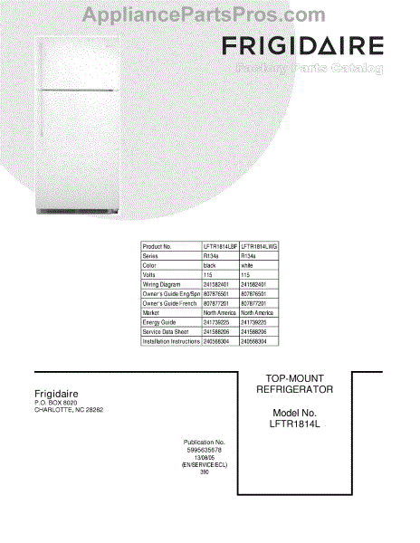 Parts for Frigidaire LFTR1814LBF: 01 - Cover Parts