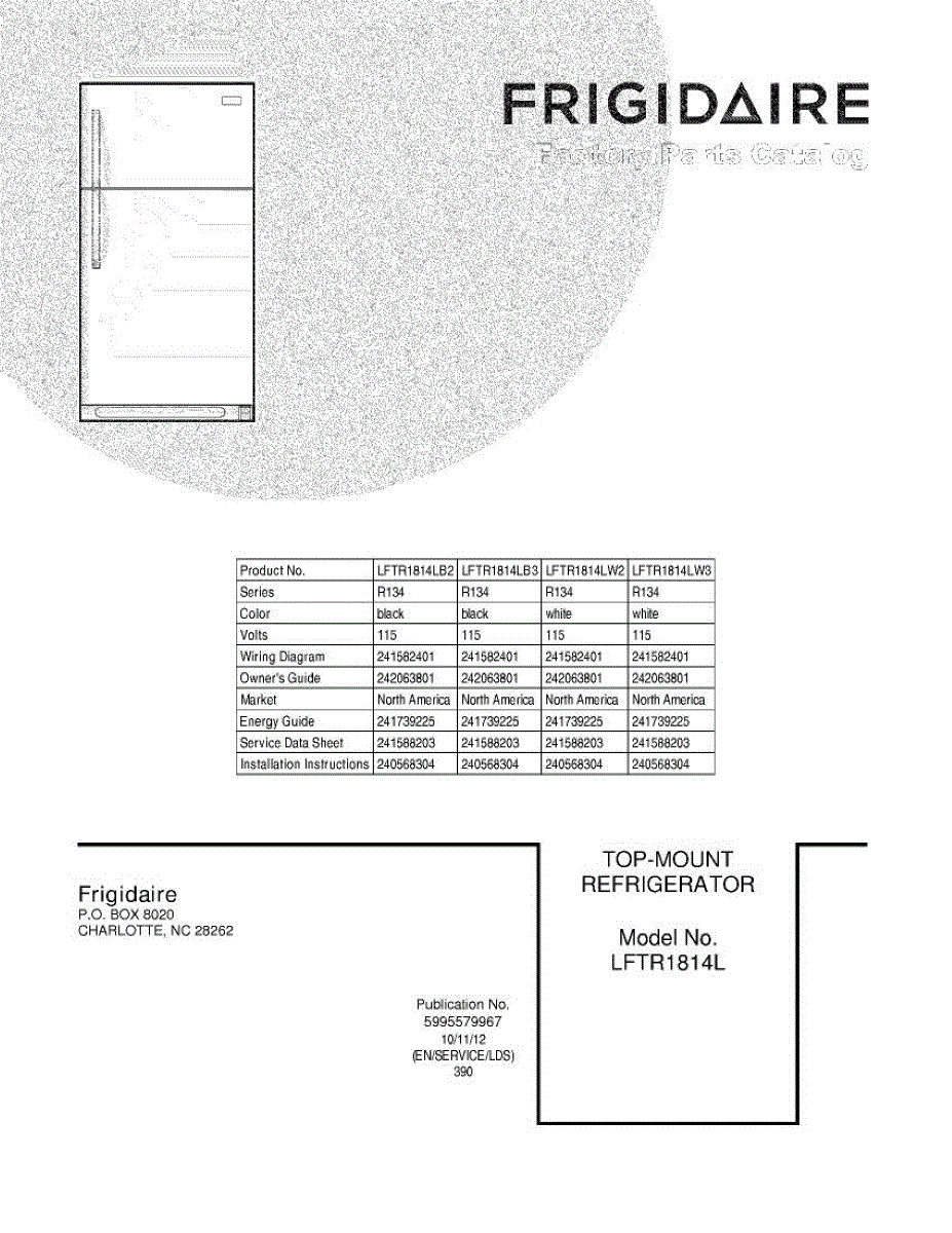 Parts for Frigidaire LFTR1814LW3: 01 - Cover Parts
