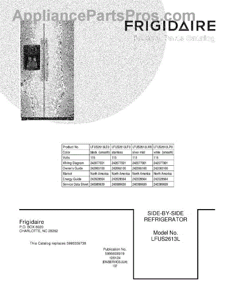 Parts for Frigidaire LFUS2613LM0: 01 - Cover Parts