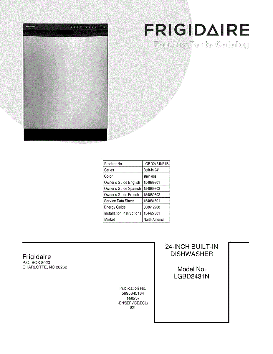 Parts for Frigidaire LGBD2431NF1B: 01 - Cover Parts