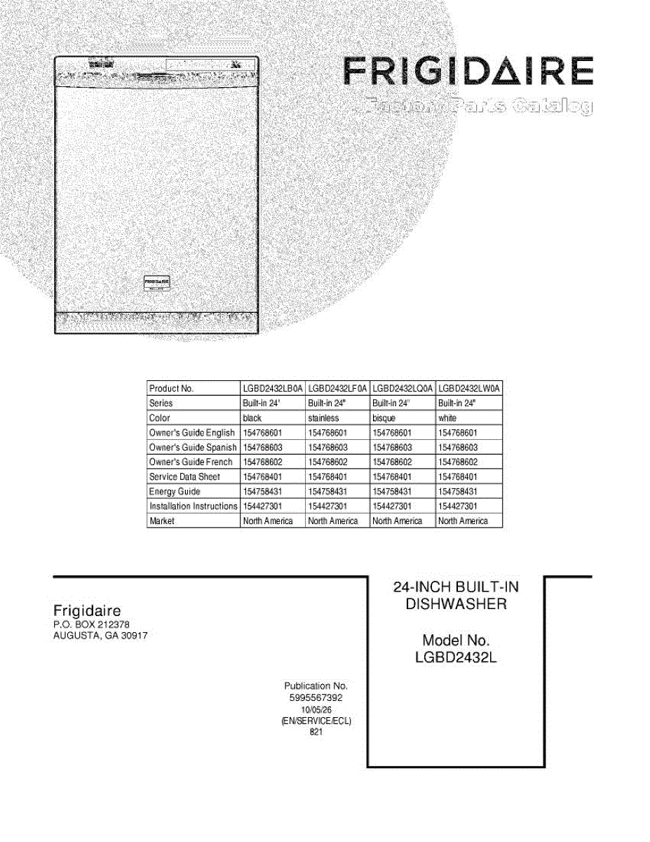 Parts for Frigidaire LGBD2432LQ0A: 01 - Cover Parts