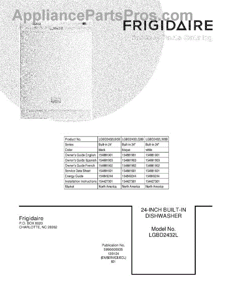 Parts for Frigidaire LGBD2432LQ0B: 01 - Cover Parts