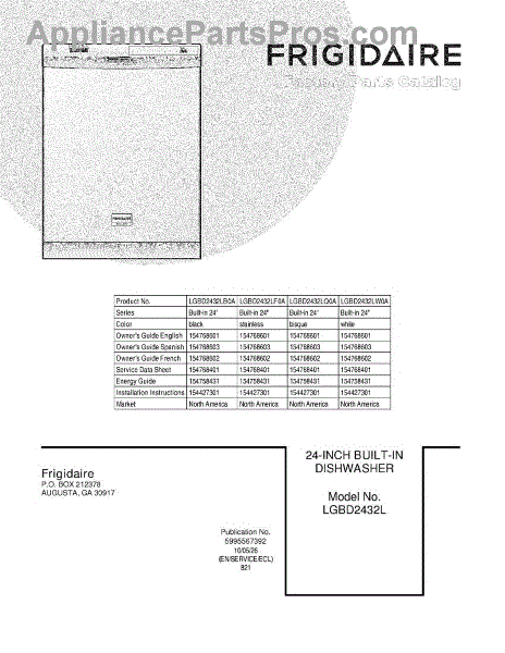 Parts for Frigidaire LGBD2432LW0A: 01 - Cover Parts