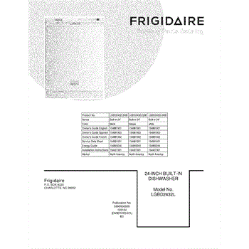 Parts for Frigidaire LGBD2432LW0B: 01 - Cover Parts