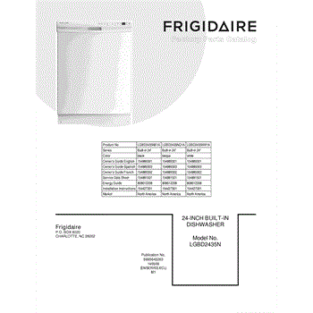Parts for Frigidaire LGBD2435NB1A: 01 - Cover Parts